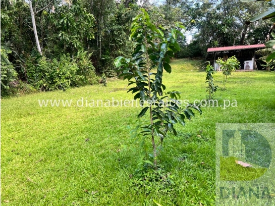 La finca le atraviesa una quebrada pequeña, tiene árboles frutales, un pequeño establo y un gallinero.
